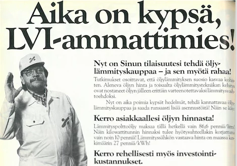 Kuvassa: Siinä missä artikkelissa kerrottiin rikkidioksidin vaaroista, sen yhteydessä mainostettiin – ironista kyllä – öljylämmityksen etuja.