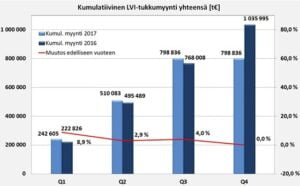 LVI-teknisten tuotteiden tukkumyyntien arvo pysyi kolmannella kvartaalilla ennusteen mukaisena.