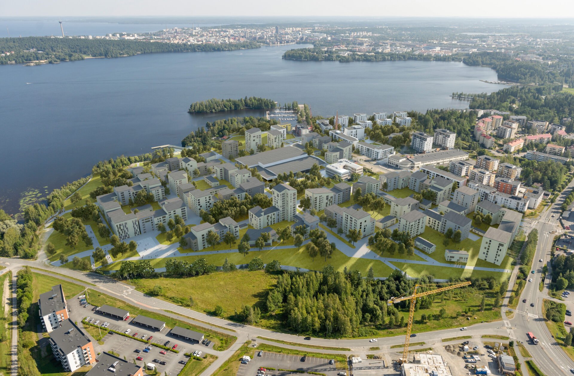 ”Yhteistyö kaupungin ja Skanskan kanssa on ollut hedelmällistä niin kaavoituksessa kuin nyt toteutusvaiheessa. Parhaillaan selvitetään muun muassa, voidaanko alueen energiaratkaisuissa hyödyntää lentokonetehtaan vanhaan luolaan tehtävän datakeskuksen hukkalämpöä. Härmälänrannasta onkin mahdollista tehdä älykkään ja ekotehokkaan kaupunkirakentamisen mallialue”, kertoo Ikonen.