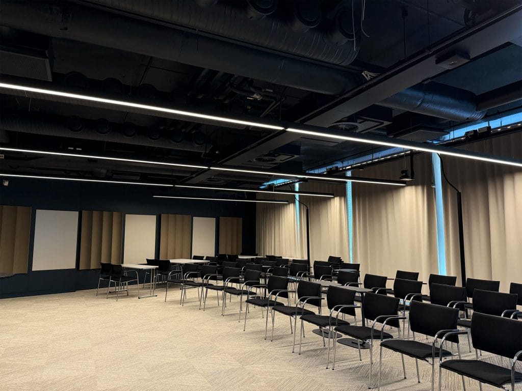 Lisäksi kohteessa käytettiin langatonta Casambi-ohjausta. Työpistevalaisimet varustettiin integroiduilla päivänvalo- ja läsnäoloantureilla, joilla ohjaus onnistuu valaisinkohtaisesti. Muiden tilojen valaistus ohjattiin erillisillä liiketunnistimilla ja langattomilla painikkeilla, joilla saadaan ohjattua valaistusta mahdollisimman tehokkaasti käytön mukaan.