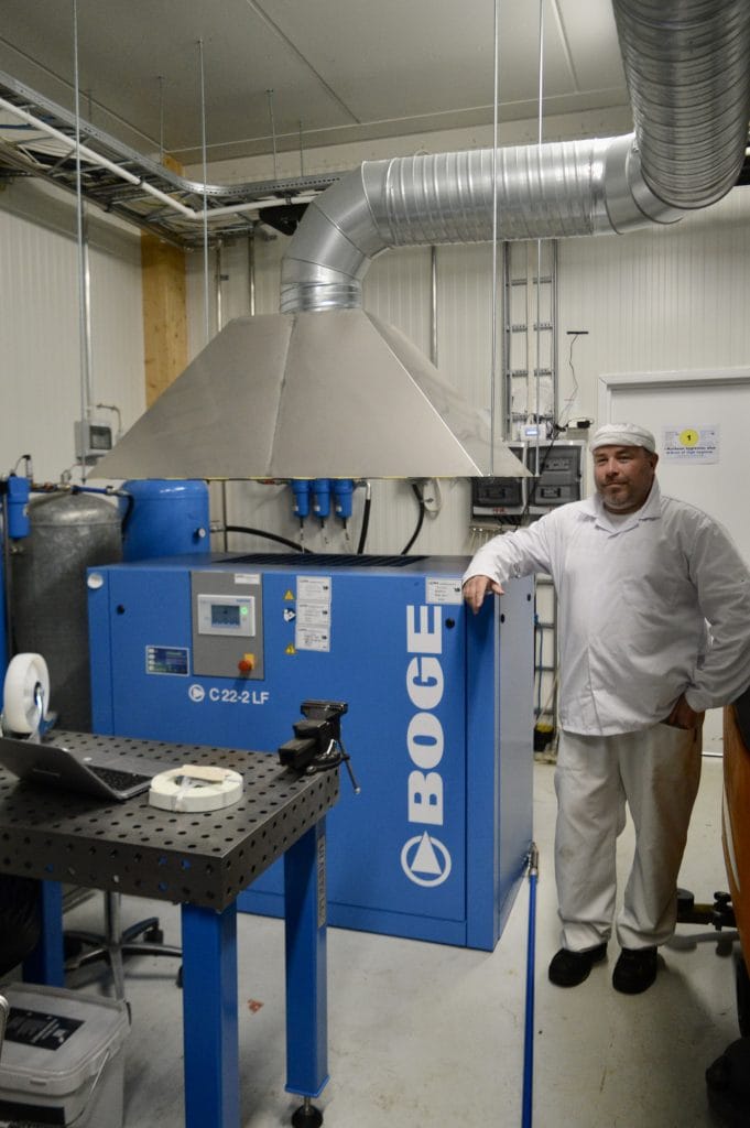 Kylmäkolmosen toimitusjohtaja Mika Räisänen kertoo, että Kylmäkolmonen toteutti kylmätekniikan ja jäähdytyksen asentamisen tehtaalle.