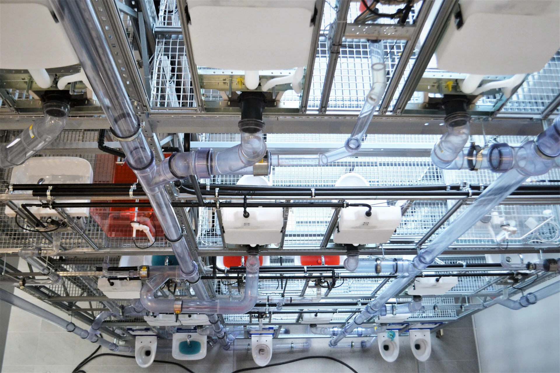 14 metriä korkeaan torniin on rakennettu toimivia ja ei-toimivia putkistoja. Erilaisia viemäröintitilanteita ohjelmoidaan ja simuloidaan torniin tabletin kautta. Putkistossa virtaava sininen vesi kuvaa oikeaoppista tilannetta, punainen väärästä asennuksesta aiheutuvaa ongelmaa. Tornin avulla suunnittelijat ja asentajat pääsevät käytännössä tarkastelemaan eri haastekohtia.