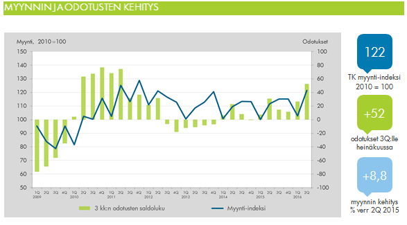 Laskua odottavien osuus kuitenkin kasvoi verrattuna edelliseen suhdannekyselyyn. Odotusten valossa teknisen kaupan myynti jäänee kolmannella vuosineljänneksellä toista neljännestä hitaammaksi.
