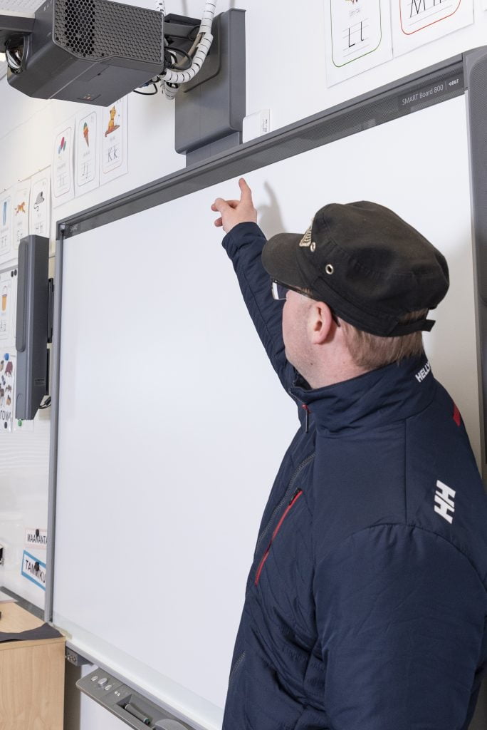 asennuskorkeudesta poiketen opettajan taulun yläpuolelle. Kuva: Jori Pihl.