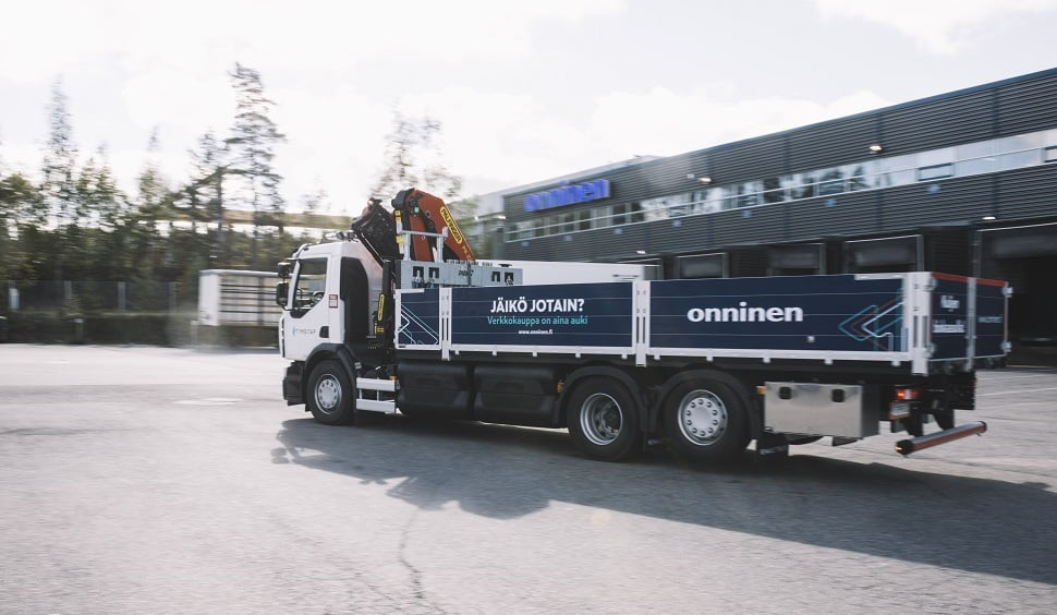 Teknisen tukkukaupan Onnisen tavaratoimituksia asiakkaiden työmaakohteisiin kuljettaa pääkaupunkiseudun ja Uudenmaan alueella kaksi uutta biokaasukäyttöistä kuorma-autoa.