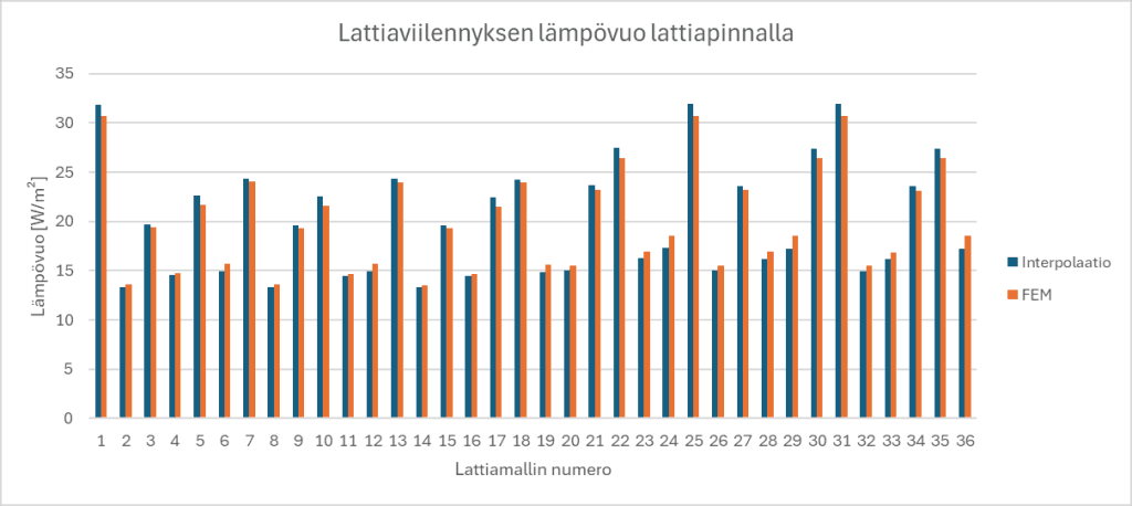 FEM-menetelmässä lattiarakenne diskretisoidaan eli täytetään kolmioilla ja jokaiseen kolmion pisteeseen ohjelma laskee lämpötilan ja siten saadaan arvio lämpötilajakaumasta, joka rakenteeseen muodostuu.