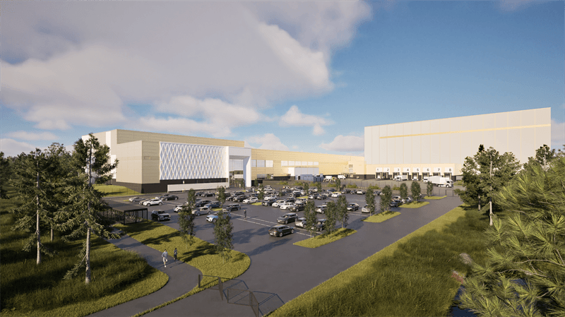 Jakelukeskus rakennetaan Järvenpäähän. Havainnekuva: Oriola