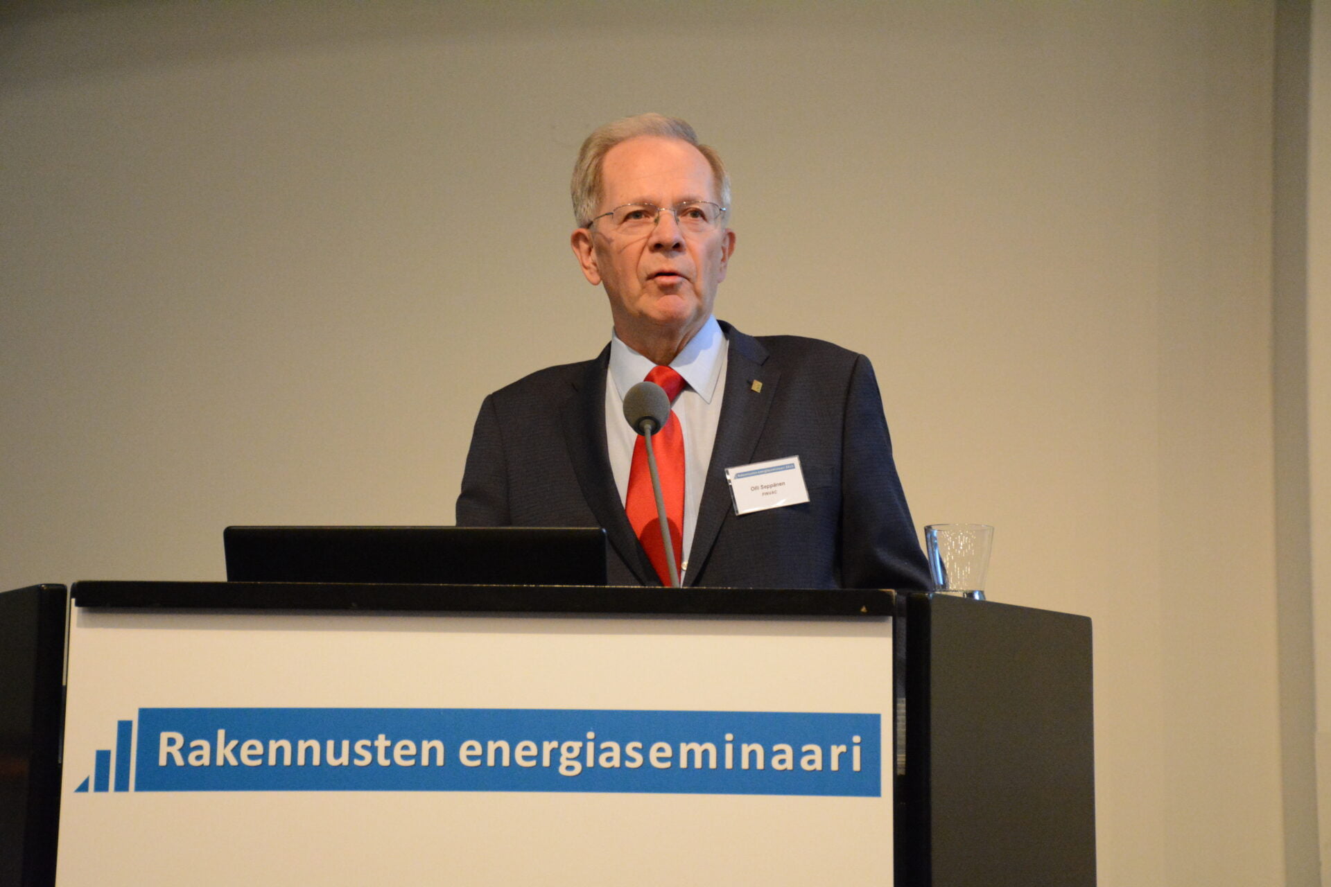 Yläkuva: Professori Olli Seppänen avasi puheellaan Rakennusten energiaseminaarin.