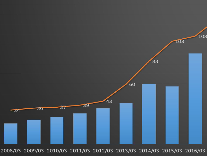 - Tilikaudella 1.4.2015–31.3.2016 yrityksen liikevaihto oli 18,1 miljoonaa euroa (edellisellä tilikaudella 11,6). Voitto oli 705 136 euroa (614 714).