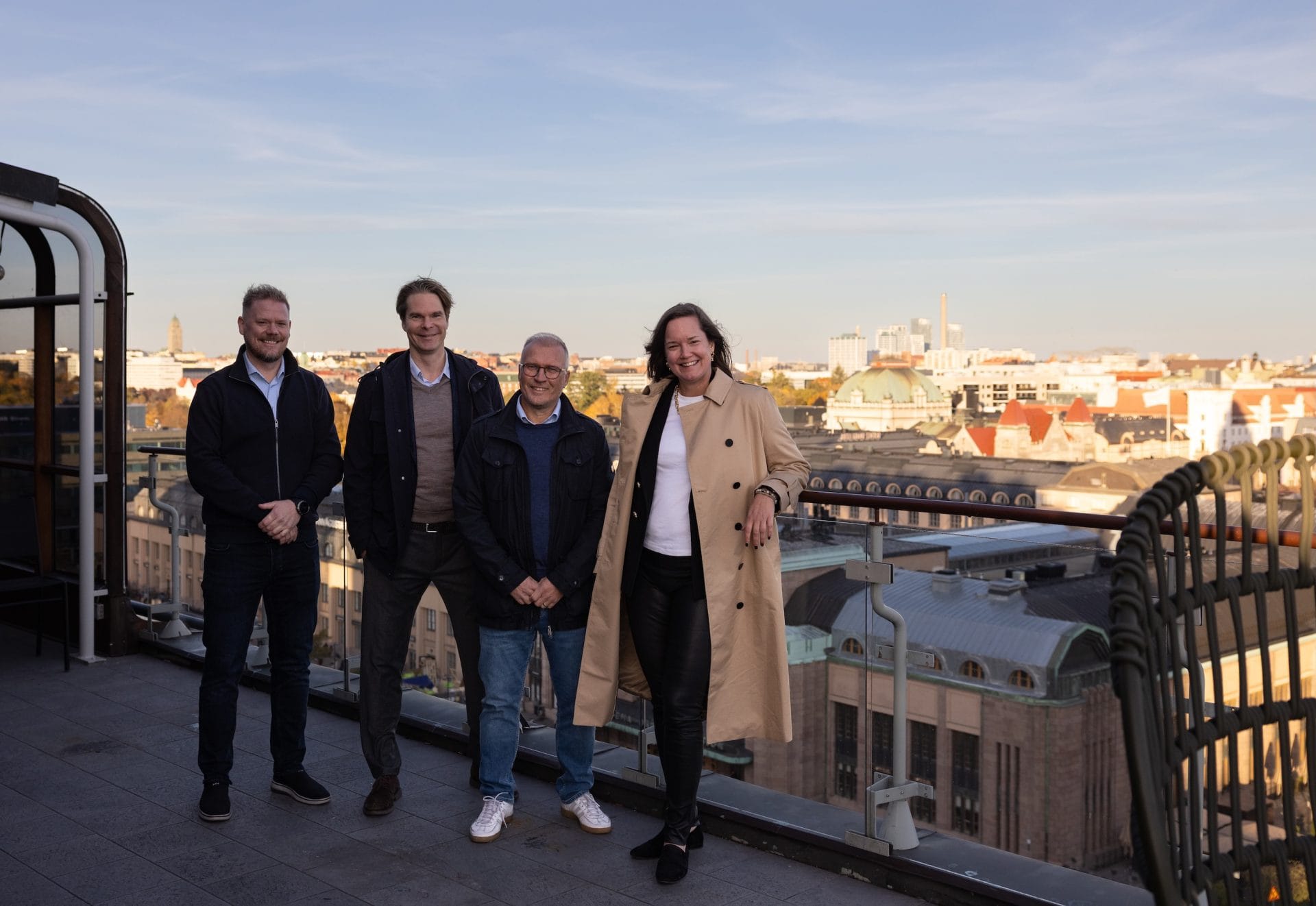 Wirmaxin kaupallinen johtaja Jarkko Niemikorpi (vas.), Saari Partnersin osakas Joni Pitkäranta, Wirmaxin toimitusjohtaja Sampo Kautto sekä Saari Partnersin osakas Hanna Henell. Kuva: Otto Helkama