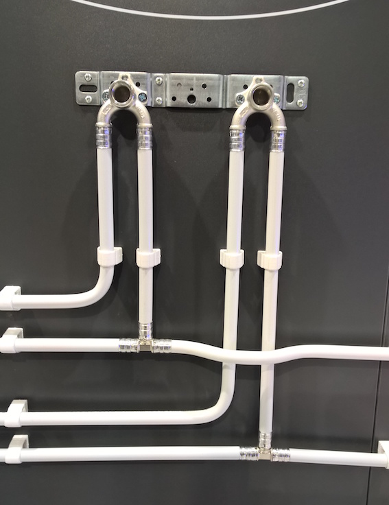 ”Tekniikka-seinä on suomalainen aloite, jota tuodaan nyt Saksan markkinoille, kun usein Uponorillakin tuotteiden virta on mennyt toiseen suuntaan. Tekniikkaseinässä olennaista on esivalmistus ja erinomaisen nopea nousulinjastojen asennusaika työmaalla, niin uudis- kuin saneerauskohteissakin”, Ruohio toteaa.